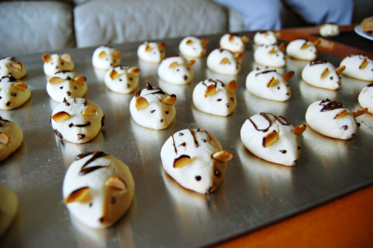 The holidays are always packed with events, and this year was no different. Last week, we spent almost every night out – the Chandler conference dinner which I helped organize, dinner with the meeting speaker, Melody’s department holiday potluck, and my neuro-op professor’s holiday party. Coincidentally, the last two took place on the same evening, just two doors down from each other on the same street in Newton. With their tight budget and upcoming salary cuts, it was no wonder that BMC had to resort to a potluck of home-cooked dishes, which contrasted sharply with the catered holiday feast with waiters and cocktails at my boss’ home. Despite the exhaustive string of shindigs, we both had Christmas weekend off. Rather than going to visit our families, we decided instead to stay home and veg out – which turned out to be our best decision yet, as the first noreaster of the season blanketed Boston with more than a foot of snow. As a new tradition, I cooked up a steaming pot of hearty bun rieu noodles while Melody baked several batches of different cookies – including a new recipe for mouse cookies courtesy of Serious Eats. Happy holidays to all!