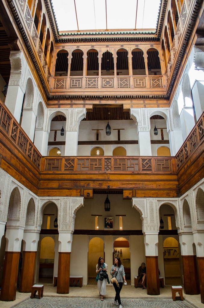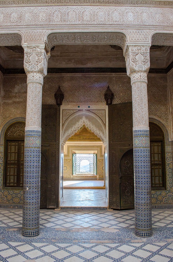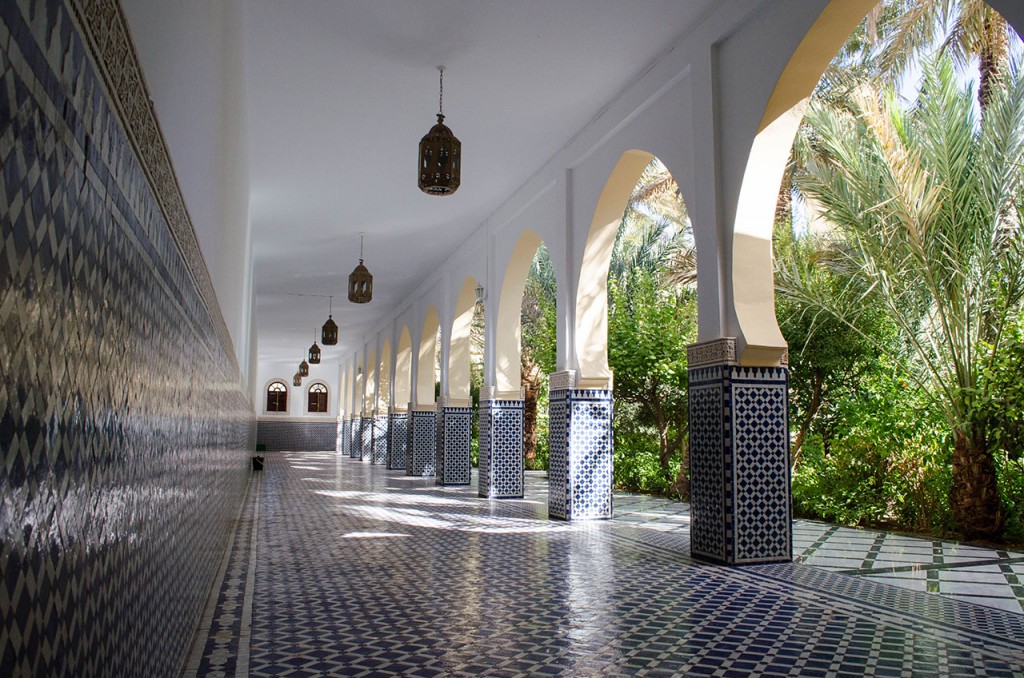 Our 4-day journey from Marrakech to Fes was arranged through Blue Men of Morocco, with a private driver who took us through the countryside to visit the myriad sights and towns near the edge of the Sahara Desert. We left the chaos of Marrakech through Tichka Pass on day one, and were immediately transported to more serene surroundings. We arrived for a late lunch at Ait Ben Haddou, where the approach to the massive Kasbah evoked imageries of ancient kingdoms, but not the compulsion to climb to the top. A 4-hour detour along rough, bumpy roads led us to Telouet, where the dilapidated ruins concealed some of the most impressive tile and stuccowork we’ve seen. Bypassing the Hollywood-city of Ouarzuarzate after the long drive, we found respite over dinner and a comfortable bed at the Jardin de la Skoura. We awoke early the next morning to back-track to Ozuarzate for a visit to Taourirt Kasbah and a guided tour of the movie sets at Atlas Film Studios, known for such films as Lawrence of Arabia, Gladiator, and Game of Thrones. In the afternoon, we continued through Dades Valley and Todra Gorge without a lunch break before disembarking at Haven La Chance in Merzouga. Our driver got a break on the third day, as we spent the morning touring Berber villages and scavenging for fossils, followed by a sunset camel ride into the dunes of Erg Chebbi in the Sahara Desert. The sky was too cloudy for a sunset photo, but we enjoyed the quiet evening with the Berber guide in our private bivouac, learning to play tribal drums and dining on chicken tagine under the stars. The next morning, we hiked up the dunes again to watch the sun rise before returning to our hotel on camelback. Our final day of driving was long and grueling, with brief stops to buy dates at the market in Rissani, take panoramic shots of Ziz Valley, chase Barbary apes in Alnif, and hunt for bathrooms in Ifrane before our late arrival in Fes. Heavy rains, hail, and lightning made for a thrilling drive into the city, but we were relieved when the road trip came to an end in Riad Idrissy.