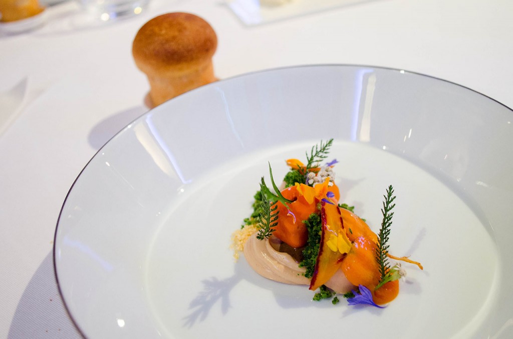With my last few clinic charts closed, I rushed home with Melody to pack, change, and prepare for our dinner reservations at the Restaurant at Meadowood. It was Melody’s birthday weekend, and what better way to celebrate than at a 3 Michelin starred restaurant. We drove through scenic Napa Valley and St. Helena to arrive at the restaurant, tucked inside a luxury resort. After gifting a new pendant from our friends in the diamond business over non-alcoholic cocktails, we started our 10-course odyssey. Our menu began with a crisped kale chip that reminded us of papadum, tiny pickled garden veggies, and a borage oyster leaf mignonette served in a ceramic oyster shell. This was followed by a salad of miner’s lettuce, caviar, asparagus, and smoked butter; a mackerel verjus escabeche with celery; a mesmerizing grilled abalone with beans and wild onion appetizer; and an incredibly round kohlrabi cooked in its own juice with rye porridge and mustard seeds. The fish was a trout with a realistic buckwheat skin and fermented turnip, which was followed by a “duck tea” with chrysanthemum dill. The recent California ban lift allowed us to indulge in the coal-seared foie gras with raw rhubarb, which led to grilled duck with “duck fudge,” yam, and sorrels. The cheese course was a goat cheese with apple porridge bread. After cleansing our palate with a sheeps milk yogurt with hibiscus rose and wild plum, we enjoyed a chocolate burnt milk walnut spicebush dessert and a frosty chocolate chestnut. The birthday girl got a tiny chocolate cake on the house, presented in a wooden box that splayed open when the lid was lifted. By the time we returned to the Candlelight Inn, it was past midnight and too late to enjoy our pricey hot tub room. We awoke to a nice breakfast and took our time planning the day – until we realized we had only booked a single night, not two. We hastily packed up and headed into town to sample olive oils, browse art galleries, comb antique shops, and bypass the multitude of wineries. For lunch, we pre-ordered fried chicken and ribs at Thomas Keller’s Addendum, which let us skip the line and enjoy extra time dining in the lush vegetable and herb garden. After recovering from our postprandial coma in the car, we strolled through Yountville – skipping the lines at Bouchon Bakery, surveying the French Laundry‘s culinary garden, chicken coop, and bee hive, and looking at the art in V Marketplace. We spent the evening at Ox Bow Public Market, dining on oysters and seafood stew at Hog Island Oyster Bar, strawberry and cardamom ice cream from Three Twins, and cream puffs from Ca’ Momi. Despite the short trip, we are left with fond, foodie feelings for this one-of-a-kind birthday celebration.