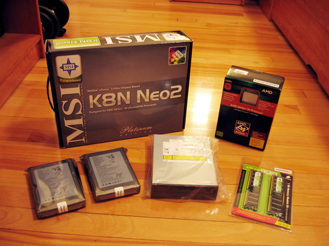 The past 2 weeks have been extremely intense. I had to crank out a revised manuscript for lab, edit one from our friends from Biogen, grade a stash of exams for the class I’m teaching, and prepare for a thesis advisory committee meeting … all while keeping up with all the movies I rented from Hollywood Video, of course, now that I’m paying $10 bucks a month for their MVP program. I must say that this whole unlimited movie rental business is starting to feel more like a curse, where I just feel like I’ve GOT to get more movies to make it worthwhile. Meanwhile, Melody’s been on night shift so I’ve barely been able to see her for more than an hour a day. Fortunately, things are finally beginning to shape up. I completed my TAC meeting yesterday with flying colors, followed by an hour of free pool for an HST TGIF, and some Indian food to celebrate a friend’s b-day. Today, I got a call from my boss, and despite almost peeing in my pants thinking I was in some sort of trouble, was told that our manuscript has been accepted for publication! Woohoo! (a la Homer Simpson) And just to make life a tad sweeter, my new desktop upgrades finally arrived too. After tonight, my computer will be sporting an Athlon 64-bit 3000+ processor, the MSI K8N Neo2 Platinum mobo, 1 Gig of dual-channel Corsair RAM, a pair of Seagate Barracudas for a RAID 0 stripe, and an NEC dual-layer DVD burner. What more can a geek-boy like me ask for? … except maybe a couple of WD raptors just in case Santa’s reading my blog. Anyway, I expect this baby to be running so fast I’ll have to bolt it to the floor! Though the goodies did set me back a couple of hundred dollars, I figure that even little old me needs a bit of pampering once in a while. =)